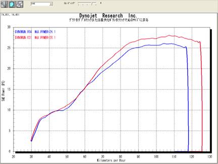 青:ノーマル車両+ノーマルマフラー 赤:ノーマル車両+OUTEXマフラー |