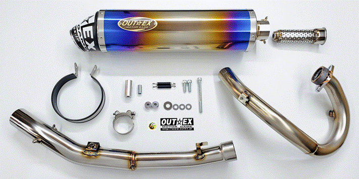 ラインナップ OUTEX.R-SSS-C(ステンレスエキゾーストパイプ、ステンレスセンターパイプ、ステンサイレンサー、コーン)価格 107,000円(税抜) OUTEX.R-SST-C(ステンレスエキゾーストパイプ、ステンレスセンターパイプ、チタンサイレンサー、コーン)価格 112,000円(税抜) OUTEX.R-SSTG-C(ステンレスエキゾーストパイプ、ステンレスセンターパイプ、チタングラデーションサイレンサー、コーン)価格 117,000円(税抜) 製品の仕様及び価格等は、品質向上の為予告無く変更される場合があります。 |