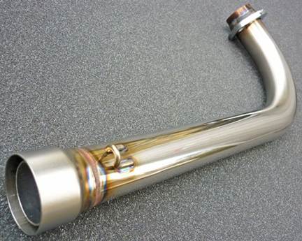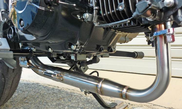 2重管エキパイをセンターパイプにジョイントすることで、エキゾーストパイプ全体の容積を稼ぐことが出来ました。 また、25.4パイのインナーパイプは、走行風による冷却が抑えられる為、排気熱をキープすることが可能になり、高回転高出力型となっております。
