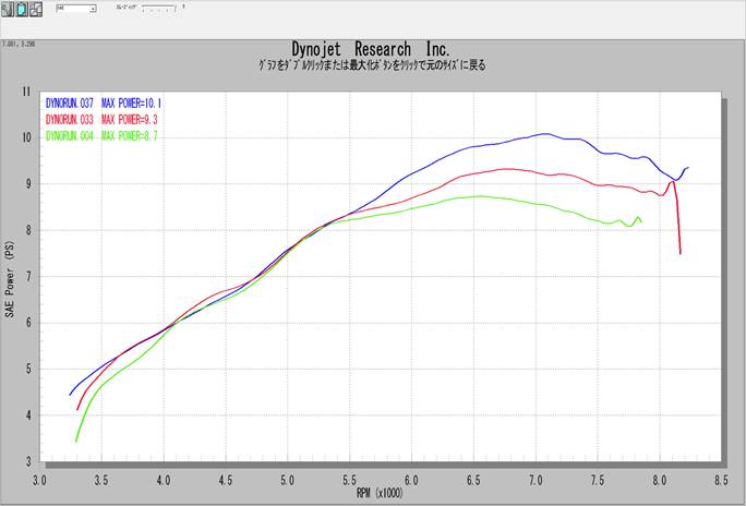 (Normal exhaust) Blue: Outex Racing air funnel (Normal exhaust) (It was measured by normal air filter.乯