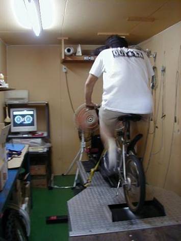 C-1を経験するとバイクの気持ちが判ります。 ゼロ発進からスタートしてスピードが約20Km過ぎた辺りにピークパワーに達します。 徐々にパワーは下がってきますが、スピードはどんどん上がっていきます。 この辺は馬力というよりも、いかにスムーズに回転を伸ばすかに掛かってきます。 これはバイクと同じことで、筋肉がエンジンで関節が駆動系と考えればいいのです! そして肺はキャブレーションです。酸欠を避ける為にも計測中は呼吸を忘れずに。 C‐1は愛車と自分自身を見つめ直すことができます(笑。 |