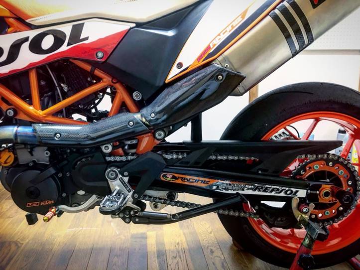 Mさん 商品名/品番 690smcrカーボンヒートプロテクター(センター、リアセット) 車種名 KTM 690smcr @取り付け作業 勿論難しい事は無いです。 一点だけ!KTMトラップアルアルなんですが、ボルトは同じカウルでも決められた場所にしか使えないので注意が必要です。 センターガードは後ろのボルトが長いので間違って前に使うと…最悪エキパイに穴空きます。笑 A走行の感想 走っての軽量化効果は体感出来ないですが、パーツを手に持ち比べると凄く軽くて驚きます! モタード車を軽量化するのは小さな積み重ねになるのでコレは貢献度高いと感じます。 B購入した理由 KTM純正のパワーパーツにも同じカーボンヒートガードは出ていますが、値段が高いのでこちらにしました。 C5段階評価 ★★★★★ D質問、ご要望 smcrのパーツをこれからも作り続けて下さい!