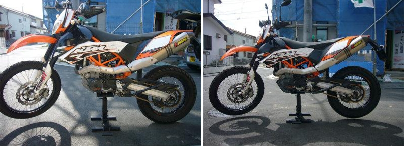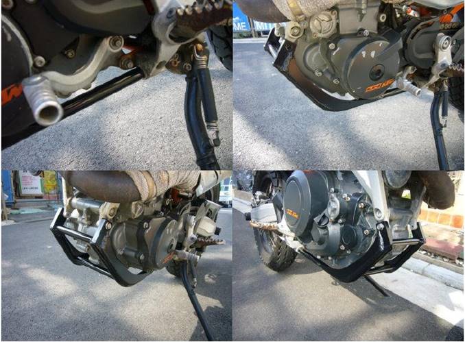 Kさん 商品名 KTM690SMC/SMCR リフトスタンド用アンダーフレーム @取り付け作業 全く問題なくボルトオンです。 ボルト固定前はステッププレート側の差し込みが若干緩く感じましたが ボルトを固定するとがたつきもなくきっちりと取り付けできました。 A走行の感想 がたつき等もなく、びびり音なども全くありません。 B購入した理由 購入前は純正の樹脂アンダーカバーを使用してリフトアップしていましたが 底面が平面ではない為に不安定で、いつか転倒させそうでしたので こちらの商品を購入しました。 C5段階評価 ☆☆☆☆(星4つです) もうちょっとコストダウンして頂けるとよいかと思います。 D質問、ご要望 マイナーな車種ですので、この手のパーツを発売して頂けるだけでありがたいです。 新たなパーツの開発&販売を期待しています。
