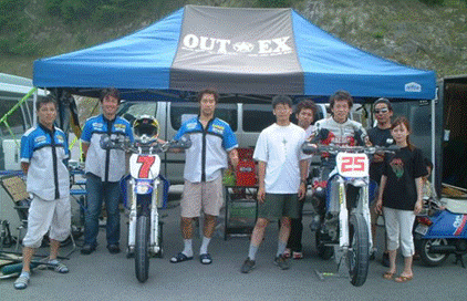 1995年 チームデイトナの宮崎敦にスポンサードを開始。7月2日のSUGO大会で宇川徹と加藤大治郎と芳賀健輔とのバトルの末、全日本初優勝を飾る。ポールトゥウィン! 1996年 TEAM OUT☆EX SP250に参戦、ブロンズカップ鈴鹿ロードレース第3戦優勝。ライダー坂口富弘。 1997年 全日本ロードレースに参戦中の小倉直人 門田祐二 時永真にサポート開始。 1998年 鈴鹿4時間耐久レース参戦 予選72位 決勝36位完走。ライダー 坂口富弘 前田英二 9月13日JAJAストマジカップ第4戦生駒 スーパーバイカーズ オープンクラス 総合優勝。マシンKSR80 ライダー 中島将登 1ヒート 1位 2ヒート 2位。 9月28日オートバイ誌主催 富士スピードウェイMAXZONE マシン YZF‐R1+OUTEX・Wスリップオン 最高速 266キロ ライダー 中島将登 11月26日オートバイ誌主催 富士スピードウェイMAXZONE マシンZX-9R+OUTEX・RBL 最高速274,96キロ ライダー宮崎敦 12月13日 JAJAストマジカップ第6戦スズキオートランド生駒(最終戦)結果 オープンクラス マシンKSR80 ライダー中島将登 ヒート1 1位 ヒート2 1位 総合優勝! 98年シリーズチャンピオン獲得。 1999年 2月28日 鈴鹿ワンデーヒーローズ第1戦 SB オープンクラス マシン YZ400F ライダー中島将登 予選 ポールポジション 決勝 優勝 5月2日鈴鹿ワンデーヒーローズ第2戦 SBオープンクラス マシンYZ400F ライダー中島将登 ポールトゥウィン SBプロダクション2クラス マシンCRM250 ライダー前田英二 予選3位 決勝 優勝。 2クラス制覇しました 5月9日筑波トランス・エコー ターミネーターズエキスパートクラス マシンYZ400F ライダー中島将登 予選2位 決勝3位。ターミネーターズモディファイドクラス マシンCRM250 ライダー 前田英二 予選4位 決勝2位 7月11日 鈴鹿ワンデーヒーローズ第3戦 YZ400F ライダー中島将登 予選2位 決勝 優勝 7月26日 マックスゾーン富士 マシンKSRU 最高速121.94q ライダー立尾賢一 9月19日 鈴鹿ワンデーヒーローズ第4戦 SBOP 予選2位 決勝優勝 YZ400F 中島将登 10月17日TIストリートカフェトロフィー ターミネーターズ エキスパートクラス ライダー中島将登予選2位 決勝優勝