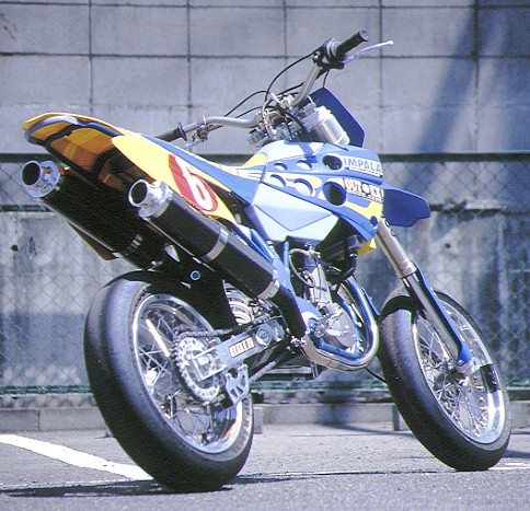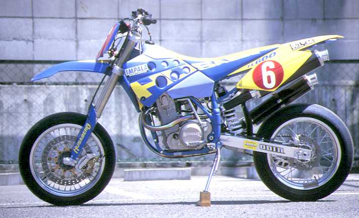 フサベルFE600 ターミネーターズレース用マフラー OUTEX.R2本出し 手曲げステンレスエキパイφ34、スチールテーパーセンターパイプ、カーボンサイレンサー ¥127.000(税抜)