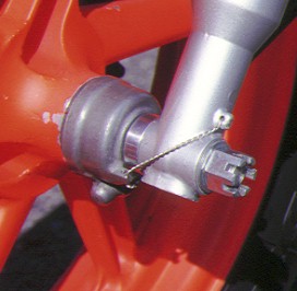 ☆ スピードメーターはKSRのSTDを使用し、メーターワイヤーとメーターギアボックスはNSR50用を使用します。 ← メーターギアボックスの回り防止にワイヤーロックをして下さい。 ← スピードメーター対応アルミホイールカラー |