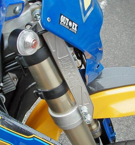 アッパーとアンダーを連結している為、特に捩れ剛性が上がります。 主な効果 @クイックなハンドリング/旋回性向上 Aコーナーリングスピードアップ/安定性 Bチャタリング減少 C直進安定性 Dブレーキング時の安定感 Eインナーチューブのスムーズなストローク Fストッピーも距離が伸びました(中しゃち談)