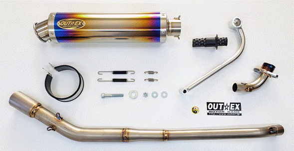 OUTEX.R-STTG (ステンレス+チタンエキパイ、チタングラデーションサイレンサー) 62,000円 品番HA02-R-STTG (3ピース式) |