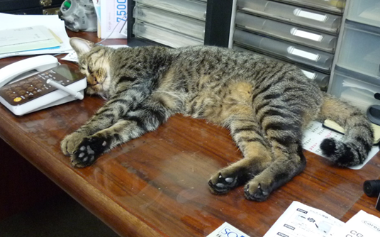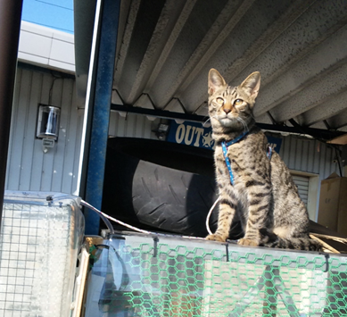 2009年の2月の寒い日に1匹の猫が工場にあった空の段ボール箱の中で丸まっていました。 その猫はかなり衰弱していましたが、僕がダンボール箱で寒さをしのげる寝場所を作ってあげて、牛乳にユンケルを混ぜて与えると少しずつ飲んでいたのを覚えています(笑 それからキャットフードも食べるようになり徐々に元気を取り戻していきましたが、その猫は用心深く人に慣れませんでした。 元気になった猫ちゃんは行動範囲を広げていき自由気ままに出入りするようになり2〜3ヶ月が過ぎた頃、その猫のお腹が大きくなっていて、 お腹がボコボコ動いていたので妊娠していることが分かりました。 そして6月頃に近所のどこかで出産しました。 お母ちゃんになった猫は野良猫だし、出産後は安全な居場所を探す為に子猫と一緒に転々としていましたが餌だけは1匹で食べに来ていました。 僕とスタッフや近所のおばさんもお母ちゃん猫が小さな子猫をくわえて移動している姿を見たことがありました。 お母ちゃん猫と子猫はこのままどこかへ行ってしますのかなと思っていたら、いつの間にかプレハブ事務所横の段ボールの家に戻っていました。 |