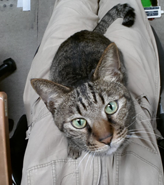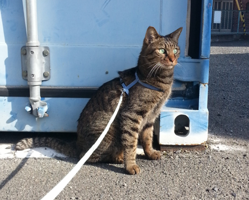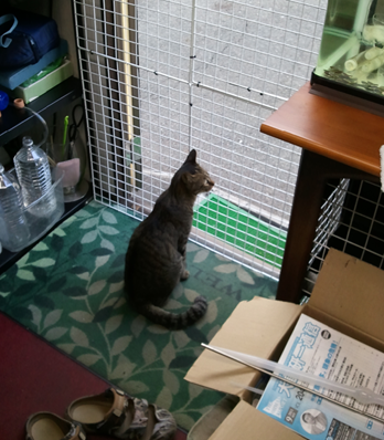 10.11 事務所横のケージ製作中に邪魔をするトラくん。 |